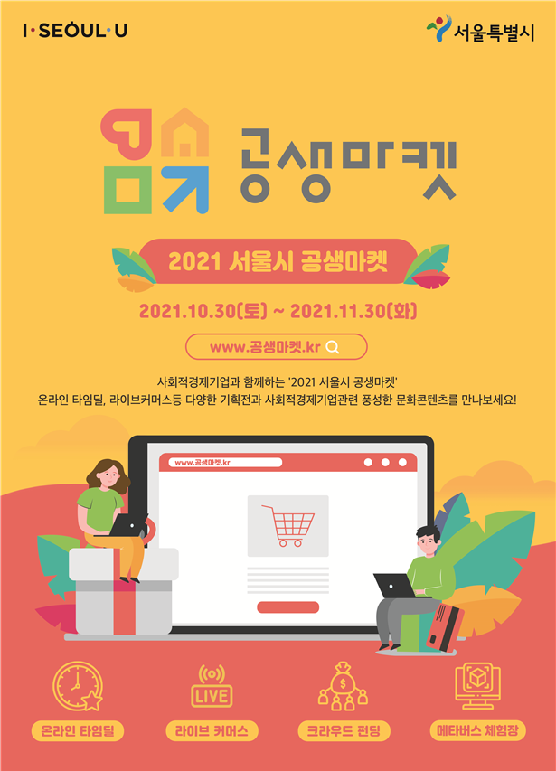 서울시는 오는 30일부터 다음달 30일까지 한 달여간 사회적경제기업의 다양한 상품을 특별한 혜택으로 만나 볼 수 있는 '2021 공생마켓'을 온라인으로 개최한다고 밝혔다.