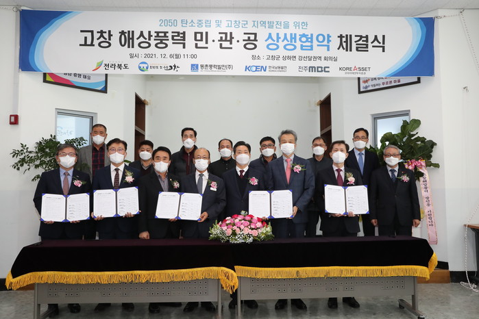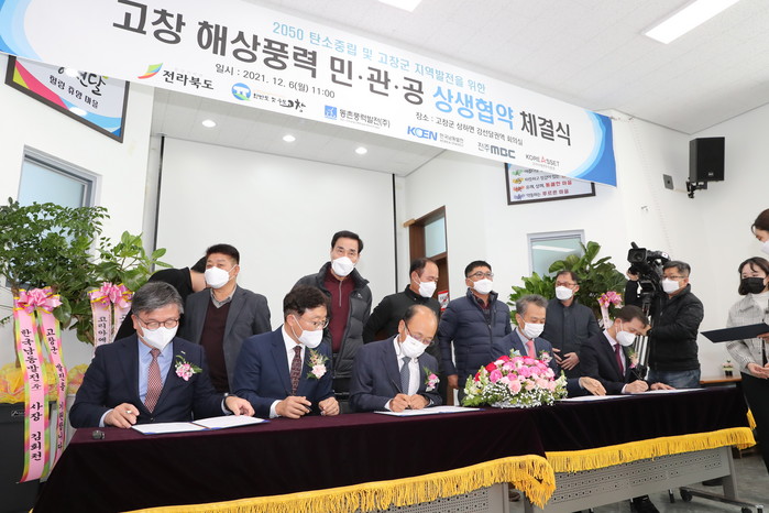 [로컬세계 김경락 기자]전북 고창군이 6일 오전 11시 상하면 강선달권역 미감쾌청 문화공간에서 전북 서남권 해상풍력의 순조로운 출범을 알리는 ‘고창 해상풍력 민·관·공 지역상생 협약’을 체결했다.