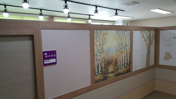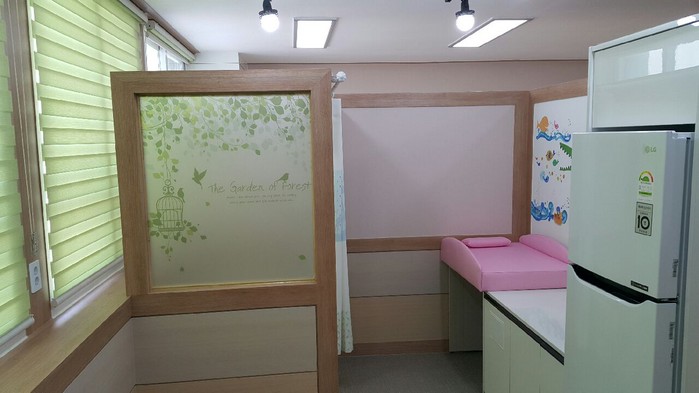 또 수유 중 아기의 시력을 보호할 수 있는 조명과 기저귀 교환대, 전자레인지, 냉장고 등을 설치하고 아늑한 느낌을 줄 수 있도록 꾸몄다.