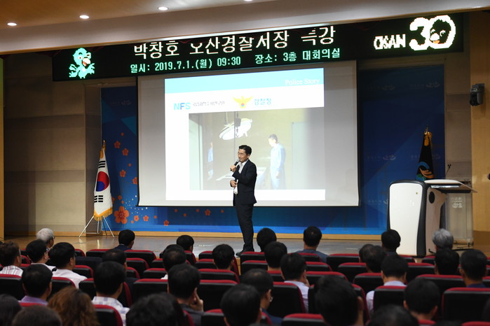 [로컬세계 고용주 기자]경기 오산경찰서 박창호 서장은 1일 오산시청 대회의실에서 ‘폴리스 스토리’라는 주제로 공무원 430여 명을 상대로 특강을 실시했다.