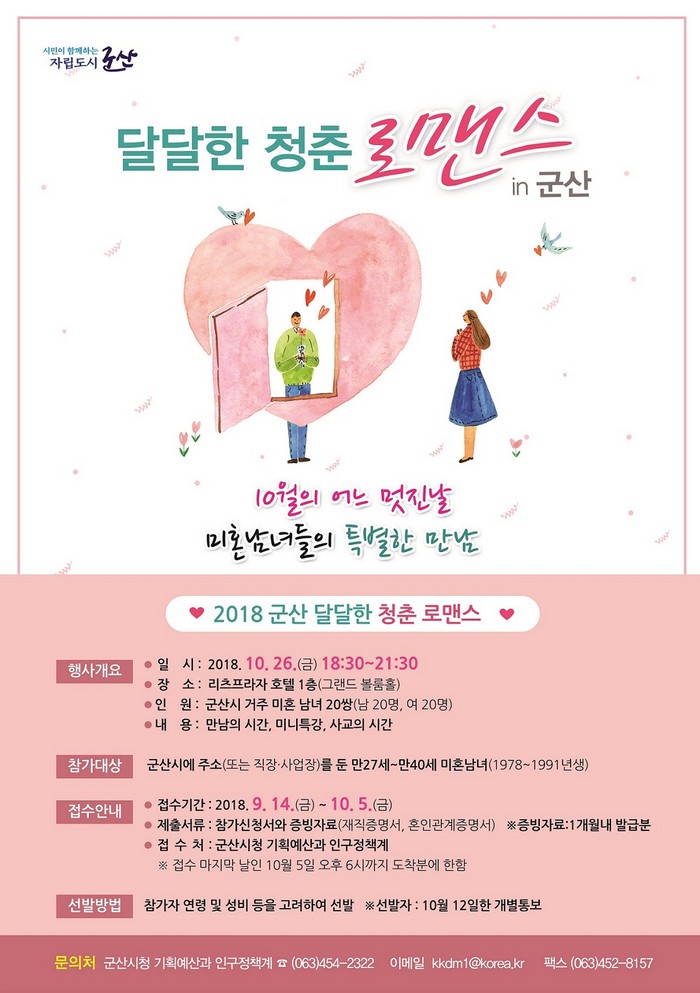 기타 자세한 사항은 군산시 기획예산과 인구정책계(☎454-2322)로 문의하면 된다.