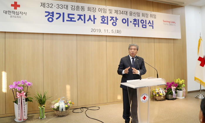 이날 오후 대한적십자사 경기도지사 5층 강당에서 열린 행사에서는 김훈동 회장이 6년의 임기를 마치고 윤신일 강남대 총장이 신임회장으로 취임했다. 현장에는 대한적십자사 본사 및 지사 임직원과 봉사원 등 120여 명이 참석했다.