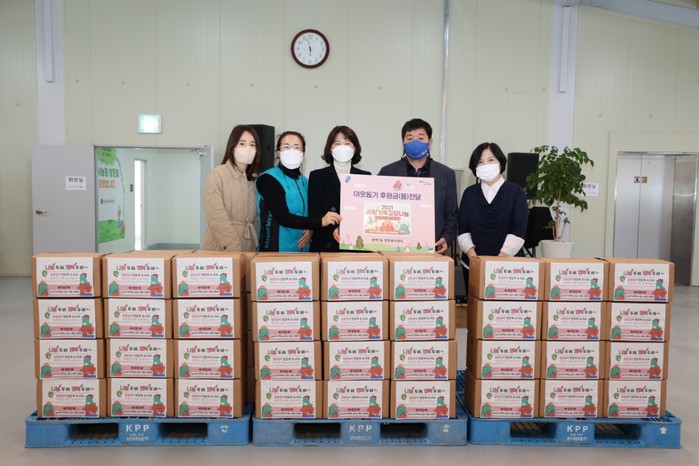 | ▲동백1동에 GH경기주택도시공사·(사)예닮공동체가 300만원 상당의 김치 65박스를 기탁했다. |