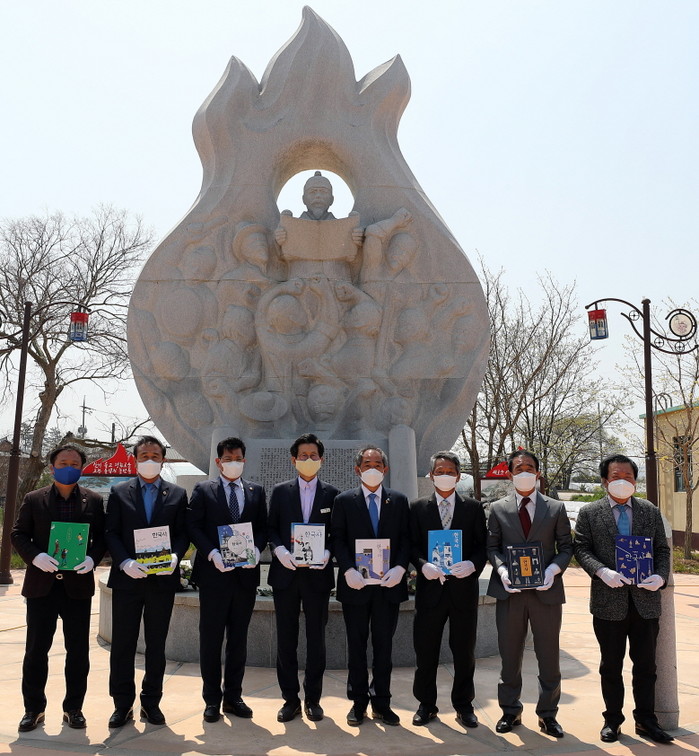 지난 25일 오전 고창군 무장면 무장기포지에서 열린 한국사 교과서 봉정식(奉呈式, 문서나 문집류를 삼가 받들어 올림)에는 유기상 고창군수와 조규철 고창군의회 의장을 비롯한 고창군의회 의원, 성경찬·김만기 전북도의원, 고창동학농민혁명기념사업회, 윤준병 국회의원 당선자, 유족회 등 30여 명이 참석했다.