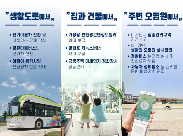 다음으로는 가정·상업용 건물에서 발생하는 미세먼지 관리에 초점을 맞췄다. 가정 내 실내공기를 개선하기 위해 공동주택의 환기장치(공조기)를 개인관리에서 아파트 공동 관리로 전환해 ‘미세먼지 free 아파트’를 확산한다.