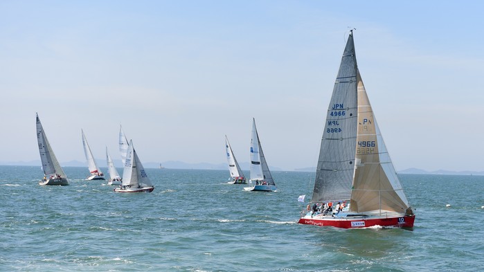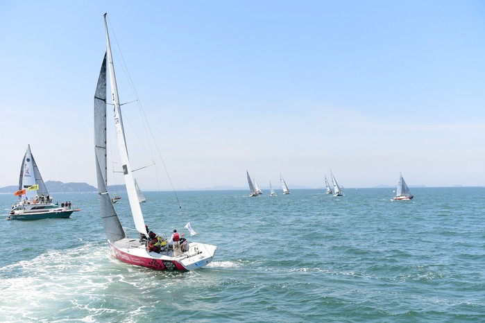 | ▲2017 화성 서해안컵 전국 요트대회에 참가한 요트들이 스릴 넘치는 레이싱을 펼치고 있다. |