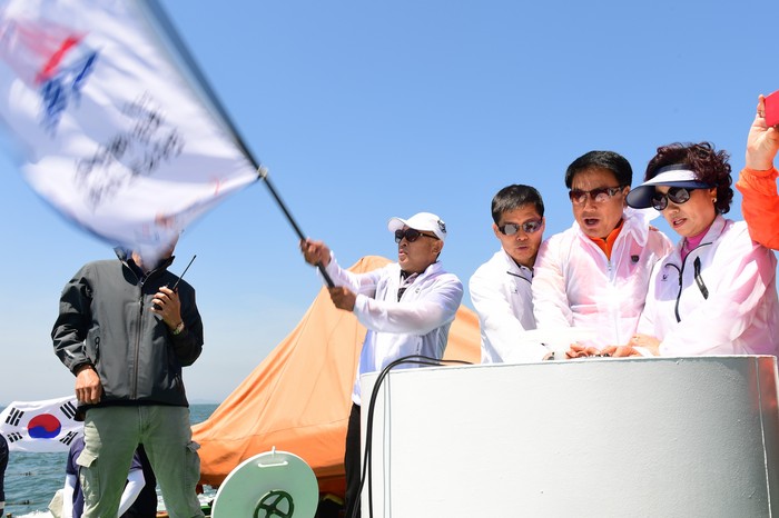 | ▲2017 화성 서해안컵 전국 요트대회 개막식에서 채인석 화성시장과 김윤홍 경기도 세일링연맹 회장(채인석 화성시장 좌측) 등 관계자들이 인사를 하고 있다.(사진제공: 화성시청) |