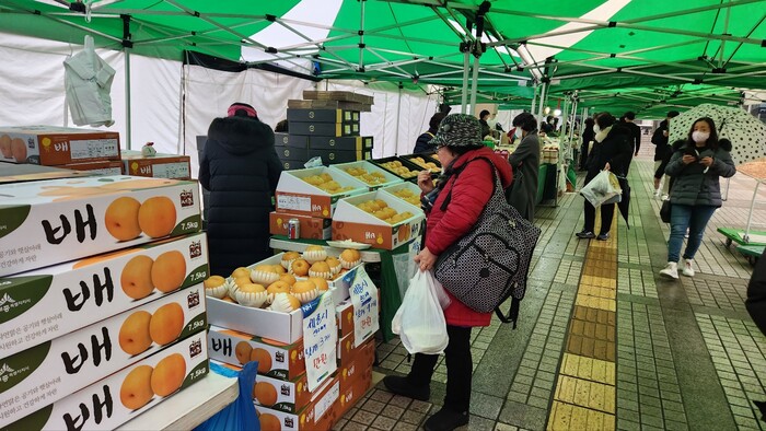 ▲ 농협 서울본부는 설 명절을 앞둔 13일 서울고등법원 동관 앞마당에서 고등법원과 함께 ‘설 명절 도농상생 직거래 큰장터’를 개장했다. (설 명절 도농상생 직거래 큰장터 전경) / 서울농협 제공 |