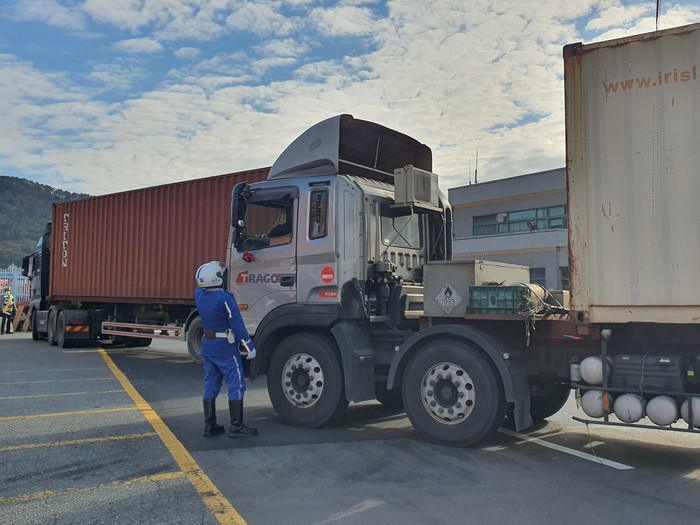 [로컬세계 맹화찬 기자]부산남부경찰서(서장 김만수)는 지난 11월 용당동 신선대 지하차도서 트레일러 화물차와 택시의 추돌사고로 1명이 사망하는 등 최근 빈발하는 트레일러 화물차 교통사고를 예방하기 위하여 안전대책을 추진한다.