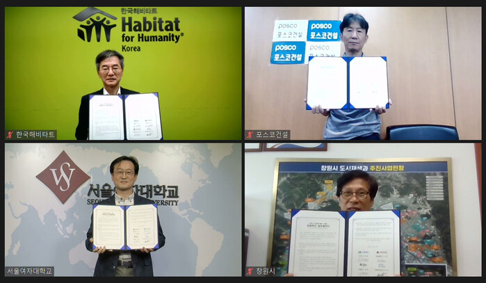 [로컬세계=한용대 기자]경남 창원특례시는 22일 마산합포구 신월동 일원에 추진 중인 새뜰마을사업과 연계해 한국해비타트, 서울여자대학교, 포스코건설과 ‘2022 도시혁신스쿨 in 창원’ 사업 추진 협약을 맺었다고 밝혔다.