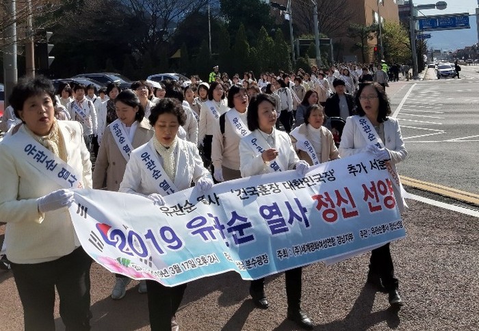 유관순 열사 정신선양 일본인회 대구지회는 오는 31일 오후 3시 국채보상운동기념공원에서 3.1운동 100주년을 기념하고 유관순 열사 ‘건국훈장 대한민국장’ 서훈을 경축하고자 ‘유관순 열사 정신선양 대행진’을 개최한다고 밝혔다.