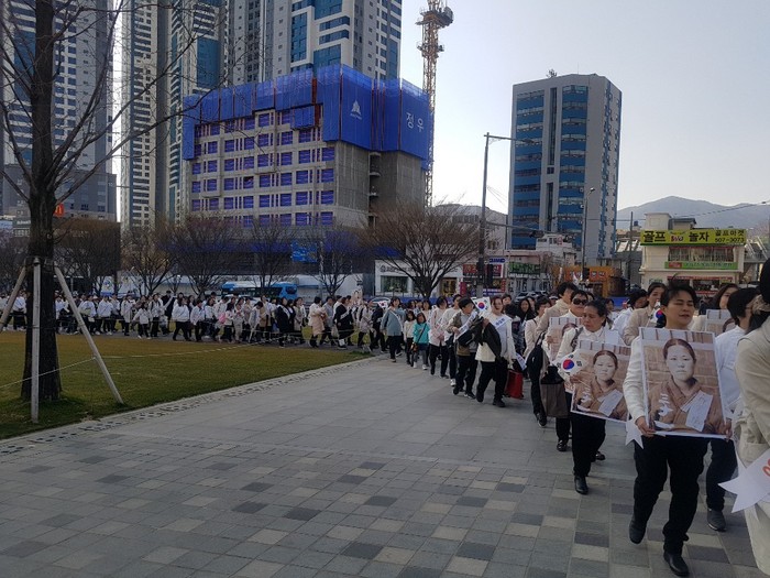 | ▲지난 17일 창원시 상남 분수광장을 시작으로 펼쳐진 유관순 열사 정신 선양 대행진 모습.(유관순 열사 정신선양 일본인회 제공) |