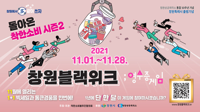 11월 1일부터 시작되는 ‘창원블랙위크’(11월 1일 ~ 11월 28일)는 코로나 장기화로 누적된 소상공인의 경영회복과 소비촉진 분위기 조성으로 경제위기 극복 및 지역경제 활력을 위한 대대적인 소비 이벤트이다.
