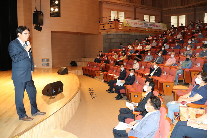 고창군은 7일 오후 동리국악당에서 민승규 전 농림축산식품부 차관을 초청해 ‘변화하는 농업, 변화를 주도하는 고창 농업인’을 주제로 특강을 열었다. 유기상 고창군수와 최인규 고창군의회 의장, 이주철 부군수, 농촌개발대학 수강생 등이 참석했다.