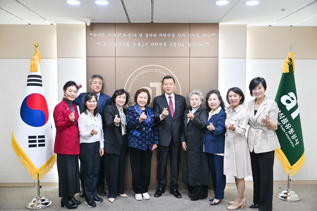 세계한인여성회장협의회 간담회 기념사진. aT 홍문표 사장(우측 5번째), 조규자 총재(우측 6번째) aT 제공
