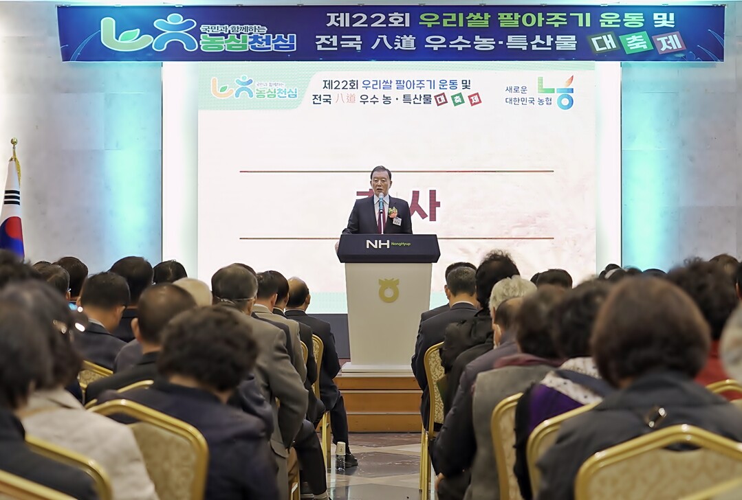 한국농수산식품유통공사(aT) 홍문표 사장은 21일 서울 신림동 서울서남부농협에서 열린 ‘제22회 우리쌀 팔아주기운동 및 전국팔도 우수농특산물 대축제’에 참석해 우리 농축산물 소비 확대가 필요하다고 강조했다. 홍 사장은 “농업과 농촌의 가치에 대한 국민공감대가 제고돼야 한다”라면서 “농어촌·농어민(축산)이 잘 살아야 대한민국이 강한 선진국이 된다”고 말했다.
