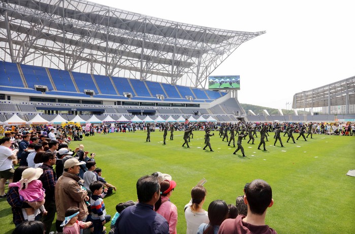 | ▲이날 특전부대의 특공무술 시범과, 군악대 퍼레이드, 어린이 치어리딩 공연 등도 많은 인기를 끌었다. |