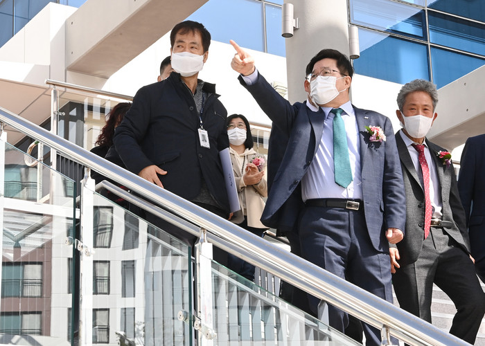 | ▲염태영 시장이 고등동행정복지센터 신청사를 둘러보고 있다./수원시 제공 |