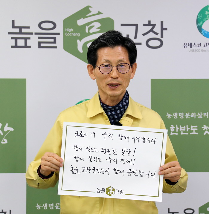 ▲유기상 군수, 코로나19 극복 희망 메세지 캠페인에 동참했다.(고창군 제공) |