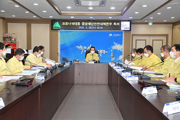 ▲정세균 국무총리가 대구에서 주재하는 첫 중대본 회의가 26일 대구시청에서 열렸다. |