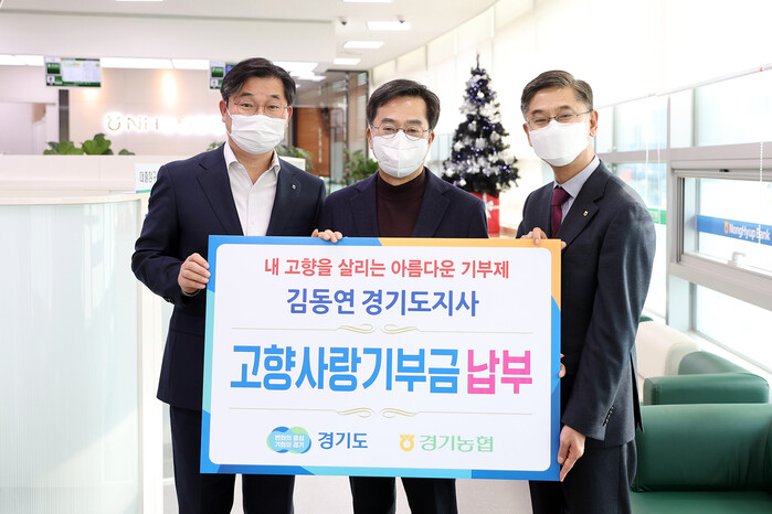 김동연 지사는 6일 오후 경기도청사에 위치한 농협을 방문해 도내 남부 오산시와 북부 구리시, 고향인 충북 음성군과 배우자 고향인 충남 천안시 등 4개 지역에 기부금을 전달하고 지역 균형 발전과 지역경제 활성화에 대한 희망의 메시지를 전했다.