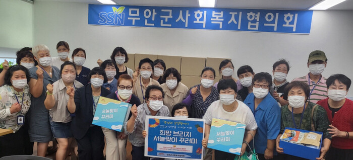 [로컬세계=박성 기자]전남 무안군 사회복지협의회는 지난 7월 26일 희망브리지 전국재해구호협회로부터 지원받은 서늘맞이 꾸러미 100세트를 8일 취약계층 100가구에 전달했다.