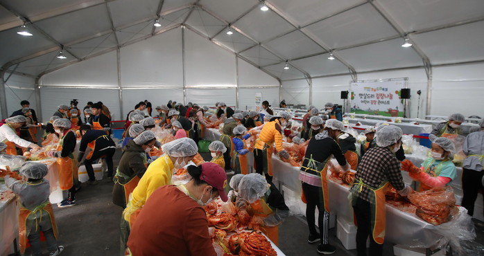 농업인과 자원봉사자 500여 명이 현장에서 담근 김장김치 10톤이 지역 내 독거어르신 등 어려운 이웃들에게 전달됐다.