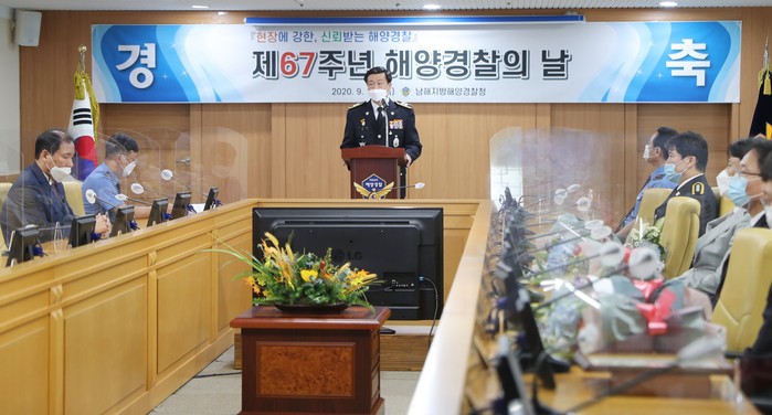 [로컬세계 맹화찬 기자]남해지방해양경찰청은 10일 남해청 대회의실에서 제67주년 해양경찰의 날 기념행사를 가졌다고 밝혔다.