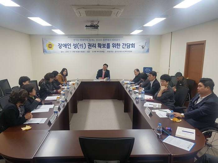 [로컬세계 이명호 기자]경기도의회 보건복지위원회 더불어민주당 최종현 부위원장은 지난 1일 경기도의회에서 장애인 성권리 확보를 위한 간담회에서 장애인 성문제에 관해 논의했다.