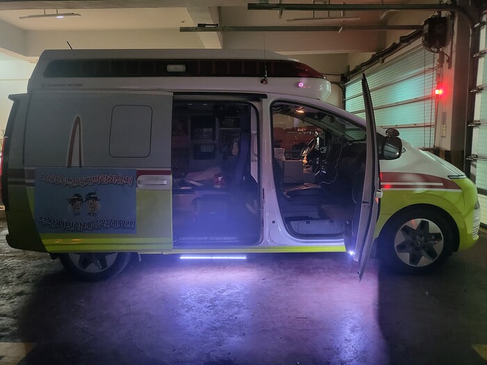 [로컬세계 부산=맹화찬 기자] 부산 남부소방서는 야간 출동 시 발생할 수 있는 현장대원의 안전사고를 사전에 예방하고자 구급차량 등 소방차량 10대에 도어라이트(door light)를 설치·운영하고 있다고 8일 밝혔다.
