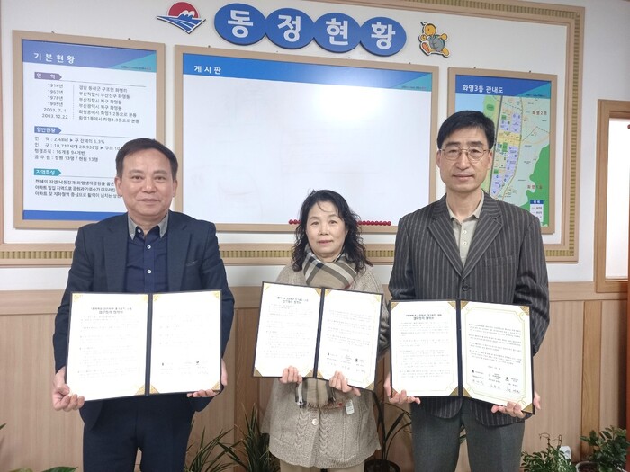 [로컬세계 부산 김민호 기자]부산 북구 화명3동 행정복지센터는 지난 26일 지역사회보장협의체(부위원장 김경자) 및 삼대파크골프 북구점(부산 북구 금곡대로 182, 대표 최성진)과 함께 노인의 건강증진과 고독사 예방을 위한 ‘행복백세 청춘원샷! 파크골프 사업’ 업무 협약을 체결했다고 28일 밝혔다.