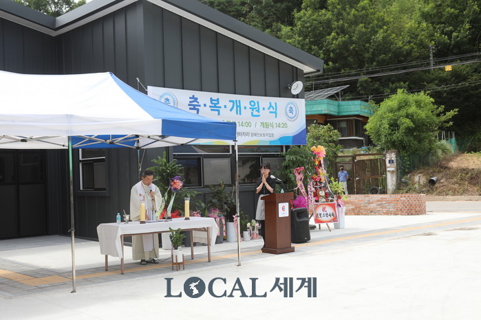 13일 고창군에 따르면 이날 오후 고창읍 성두마을 인근에 장상원 안드레아 신부주례로 장애인보호작업장 샘터자리(원장 양성모) 축복식및개원식이 열렸다. 개원식에는 정 서진 고창군 문화 환경국장, 고창군의회 최인규의장및군의원, 고창군 사회복지기관과 장애인단체, 전북 장애인 직업재활협회 등이 참석했다.