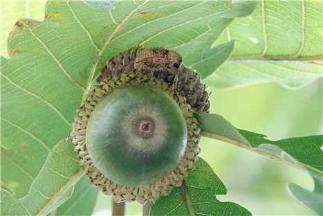 참나무는 도토리거위벌레로부터 과실 솎아내기(적과) 도움