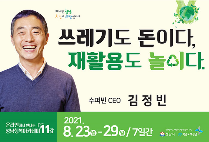 ‘쓰레기도 돈이다, 재활용도 놀이다’를 주제로 한 김 대표의 강연을 시 공식 유튜브 ‘성남TV’로 시청할 수 있다.