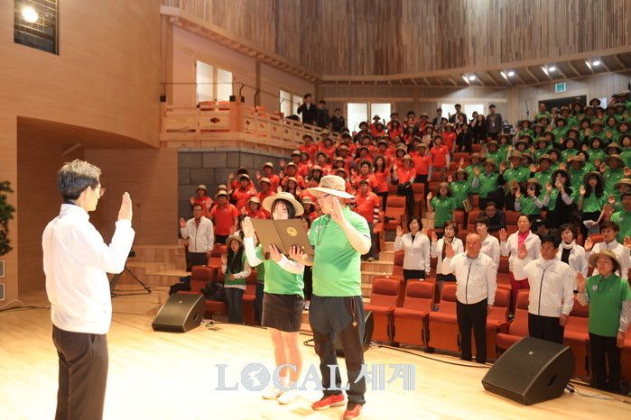 ▲자원봉사자들이 선서를 하고 있다.(사진=김경락 기자) |