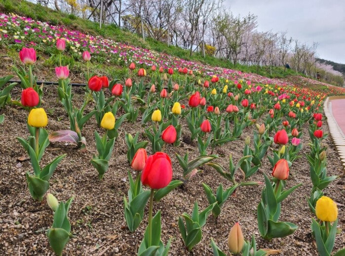 [로컬세계 부산=맹화찬 기자]부산 기장군(군수 정종복)이 좌광천 일원에 관광객과 지역주민들이 봄을 만끽할 수 있도록 튤립 산책로를 조성했다고 21일 밝혔다.