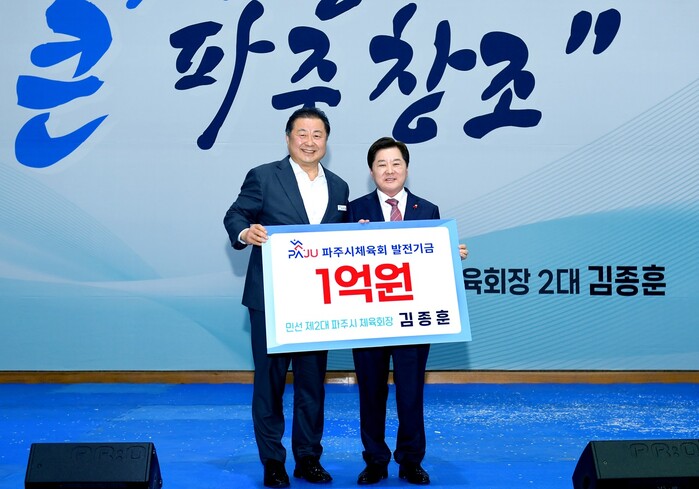 ▲ 김종훈 신임회장 취임과 함께 체육발전기금 기탁. 파주시 제공 |