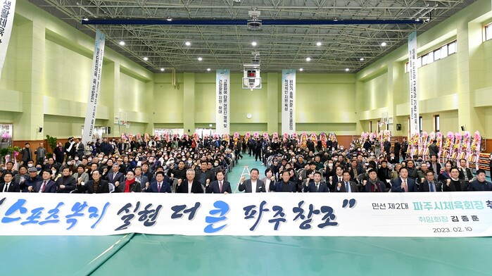 [로컬세계 = 이영원 기자]경기 파주시는 10일 금촌다목적체육관에서 체육회 임원, 종목 단체 회원 및 지역 내 기관·사회단체장 등 900여 명이 참석한 가운데 ‘민선 제2대 체육회장 취임식’을 개최했다고 밝혔다.