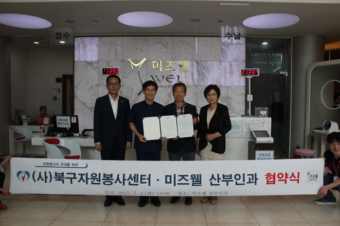 북구자원봉사센터와 미즈웰 산부인과은 이날 업무협약을 통해 자원봉사자들의 사기진작에 도움이 되고, 지역사회에 작은 기여를 할 수 있는 계기가 될 것으로 기대하고 있다.