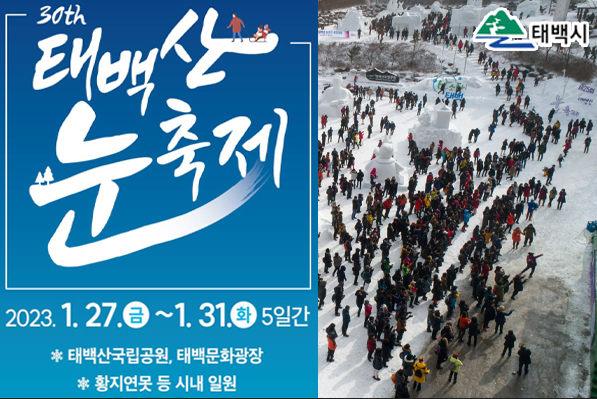 [로컬세계=박상진 기자] 제30회 태백산 눈축제가 2023년 1월 27일부터 1월 31일까지 5일간 태백산국립공원 및 황지연못, 문화광장 일원에서 개최된다.