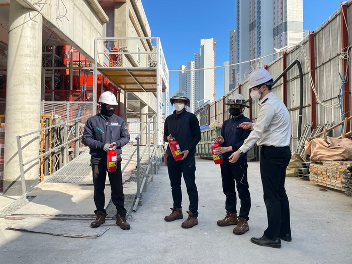 주요 컨설팅 내용으로는 ▲소화기 사용법 및 초기 화재대응방법 안내 ▲공사장 화재예방 매뉴얼 배포 ▲용접‧용단 작업 주변 15m이상 안전거리 확보 및 가연물 제거 등을 안내했다.