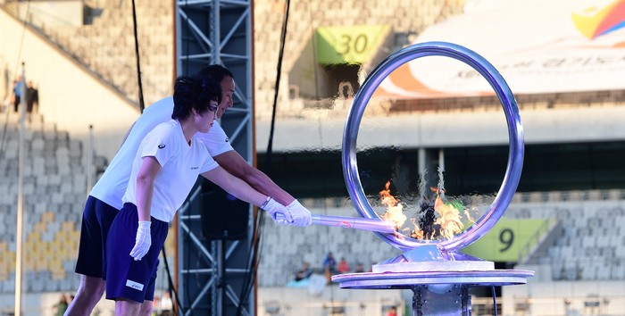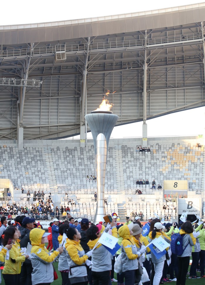 공식행사는 ‘위대한 열정으로‘라는 주제로 진행됐다. 사회자의 개식 통고에 이어 31개 시 . 군 선수단이 입장하고 개회선언과 대회기 게양에 이어 송산 공룡알 화석지 방문자센터서 채화돼 화성시를 일주한 성화가 시민 대표 주자에 의해 점화돼 분위기를 달궜다. ‘위대한 열정‘이라는 주제답게 공식행사에는 다른 도민체전에선 볼 수 없었던 특별한 순서가 마련됐다.