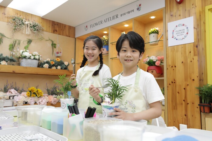 ▲ 플라워 아틀리에 프로그램을 체험하는 아이들 |
