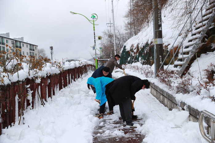 직원들은 시 청사 내 주차장을 비롯해, 중앙로와 황지연못, 태백역 일대 및 주요 인도변, 취약지역 곳곳에 흩어져 제설 작업을 펼쳤다.