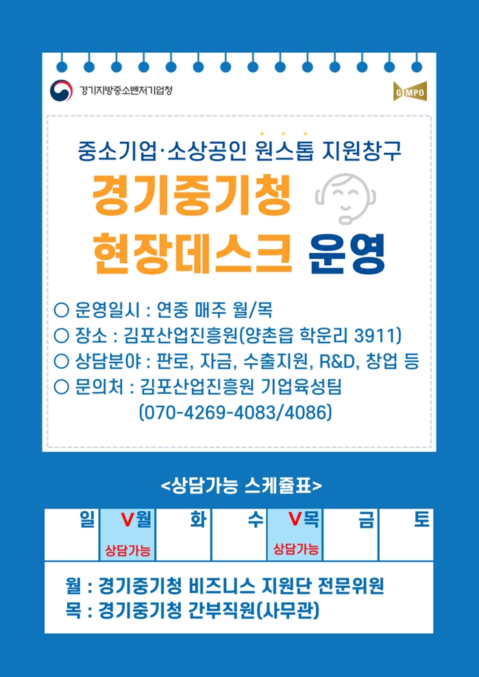 또한 관내 중소기업의 애로사항을 해결하기 위하여 최초로 ‘경기중기청 중소기업·소상공인 현장데스크’를 2021년 4월부터 운영 중이다.