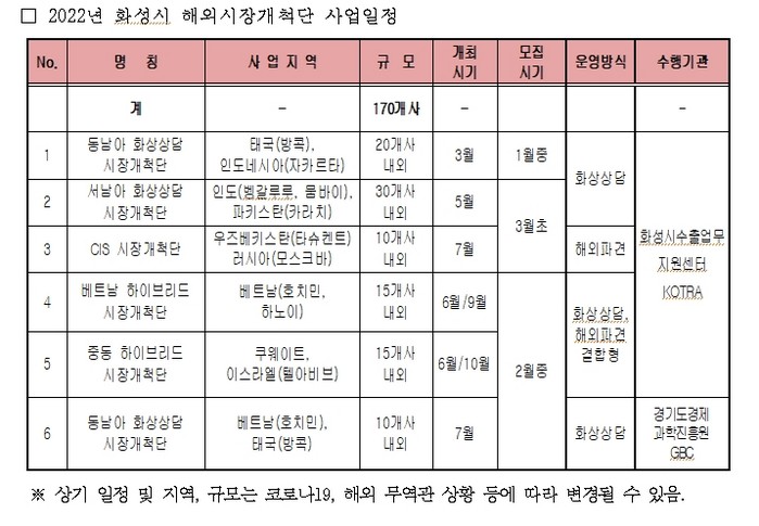 | ▲2022년 화성시 해외시장개척단 사업일정. |