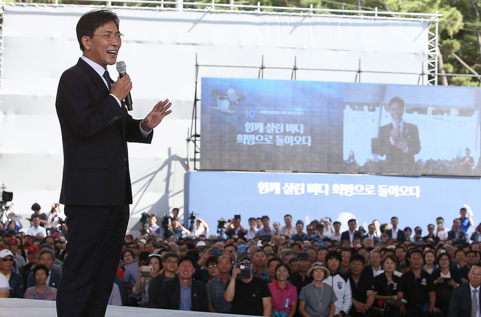 안 지사는 “10년 전 이 앞바다를 시커멓게 매운 기름을 우리의 두 손으로 닦아내고 걷어냈다. 그것은 전 세계 사람들이 놀란 기적이었다”며 “충남도지사로서 이 기적을 일궈낸 자원봉사자와 국민 모든 분들께 ‘감사합니다’, ‘고맙습니다’는 말씀을 꼭 드리고 싶다”고 말했다.