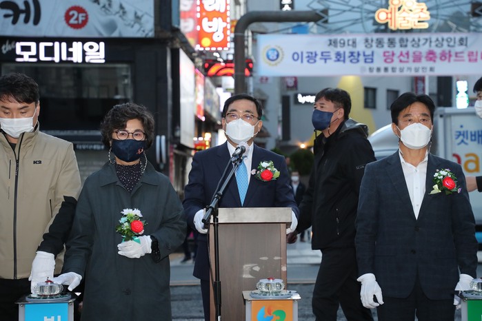점등식에는 허성무 시장과 박옥순 경남도의원, 이천수 창원시의회 건설해양농림위원회 위원장, 정길상 창원시의회 문화환경도시위원회 부위원장을 비롯한 지역구 의원, 이광두 창동통합상가 상인회장과 김상수 오동동 상인회장을 비롯한 인근 상인 등 30여 명이 참석했다.