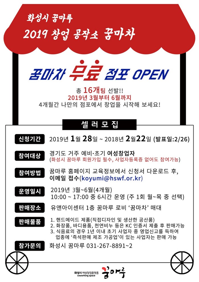 한편 화성시 꿈마루는 지난해 10월부터 12월까지 3개월간 무료 점포 꿈마차를 운영했다.
