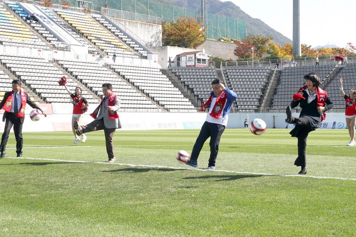이날 허성무 시장은 김지수 경상남도의회 의장, 조기호 경남FC 대표, 강태룡 경남경영자총협회 회장 등 참석 내빈과 함께 간담회를 가진 후 선수단 및 구단 관계자들을 격려하고, 경남FC의 승리를 기원하는 시축을 했다.
